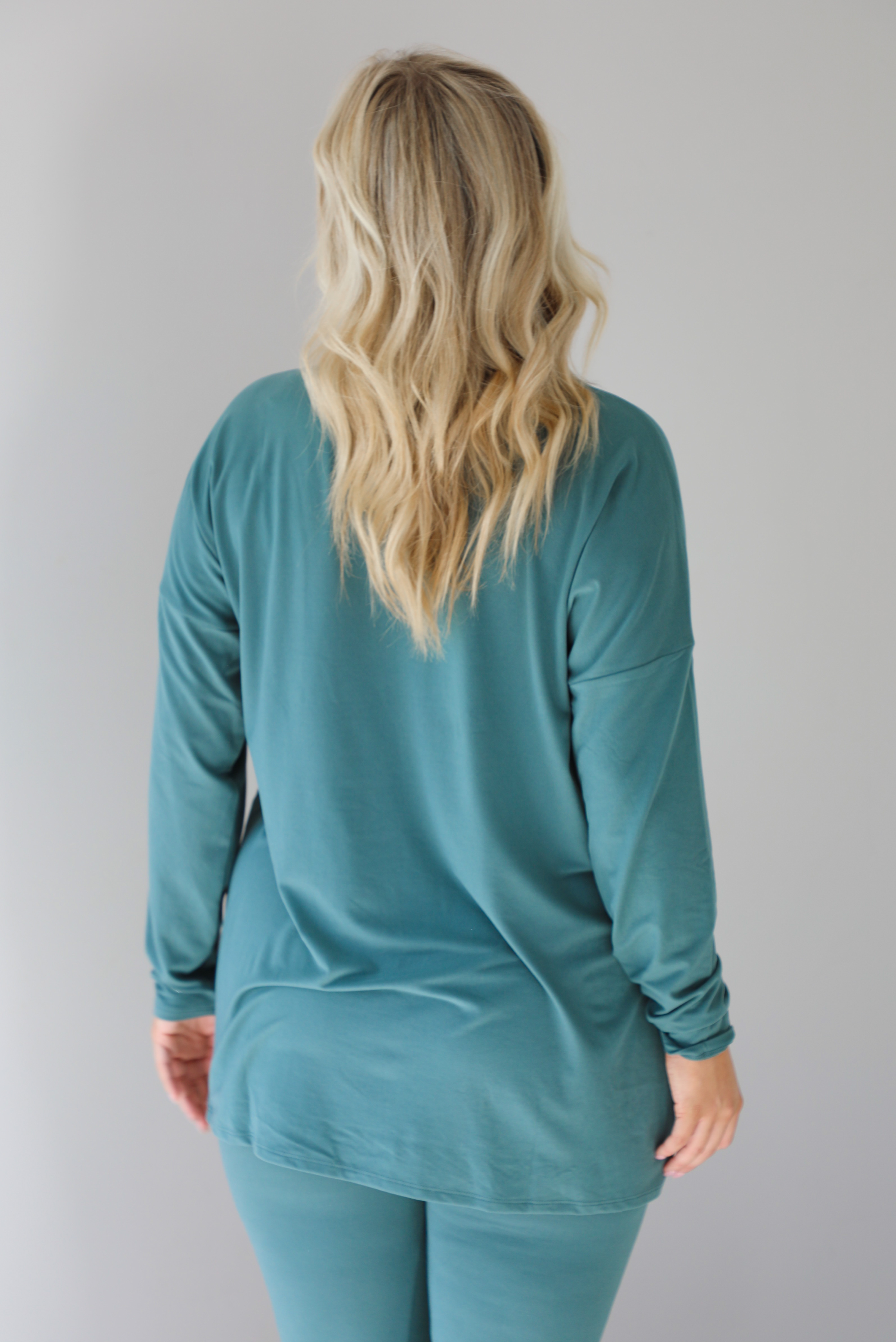 - Two piece set featuring an oversized long sleeved top and fitted leggings