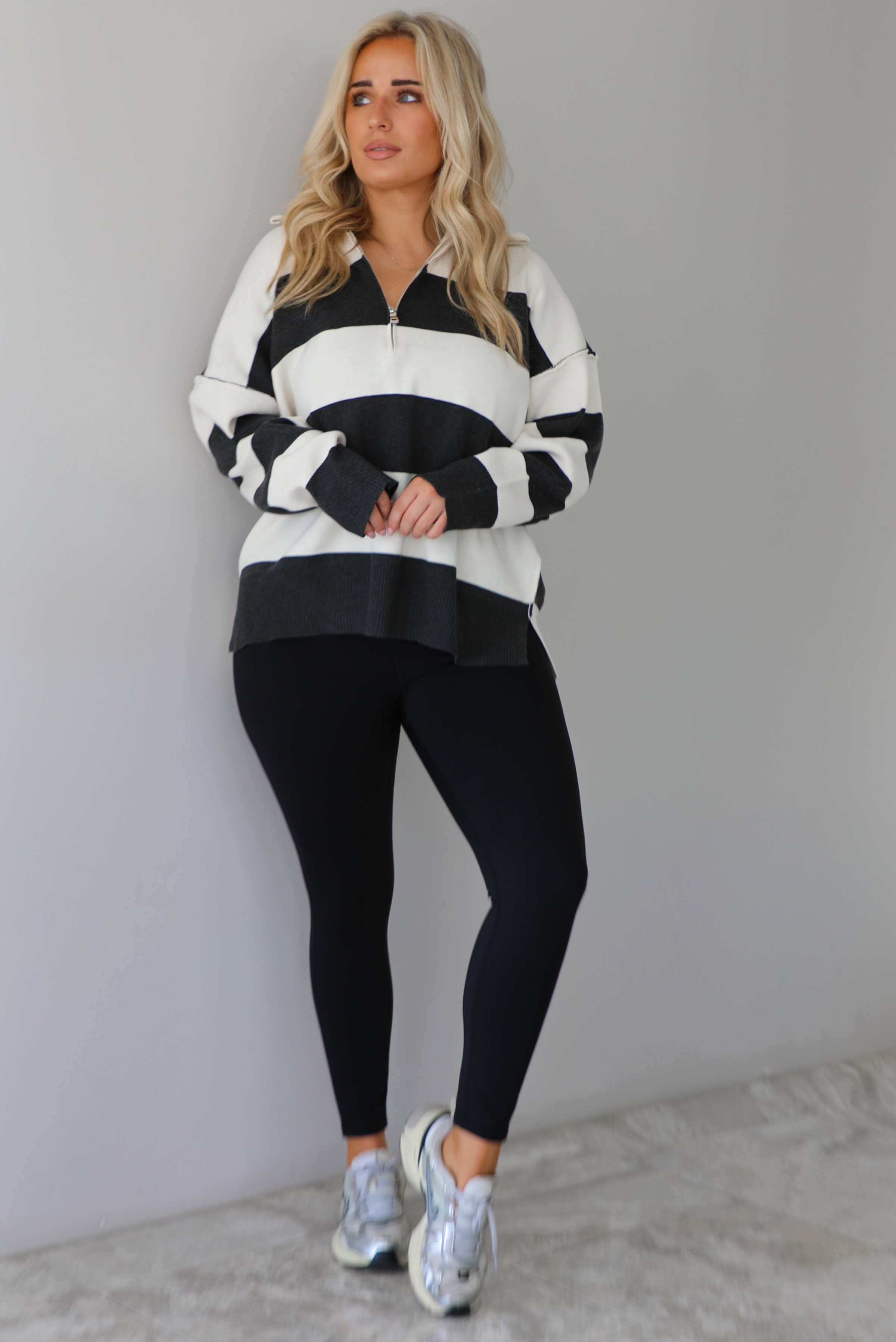 Let's Go Quarter-Zip Sweater: Charcoal/White