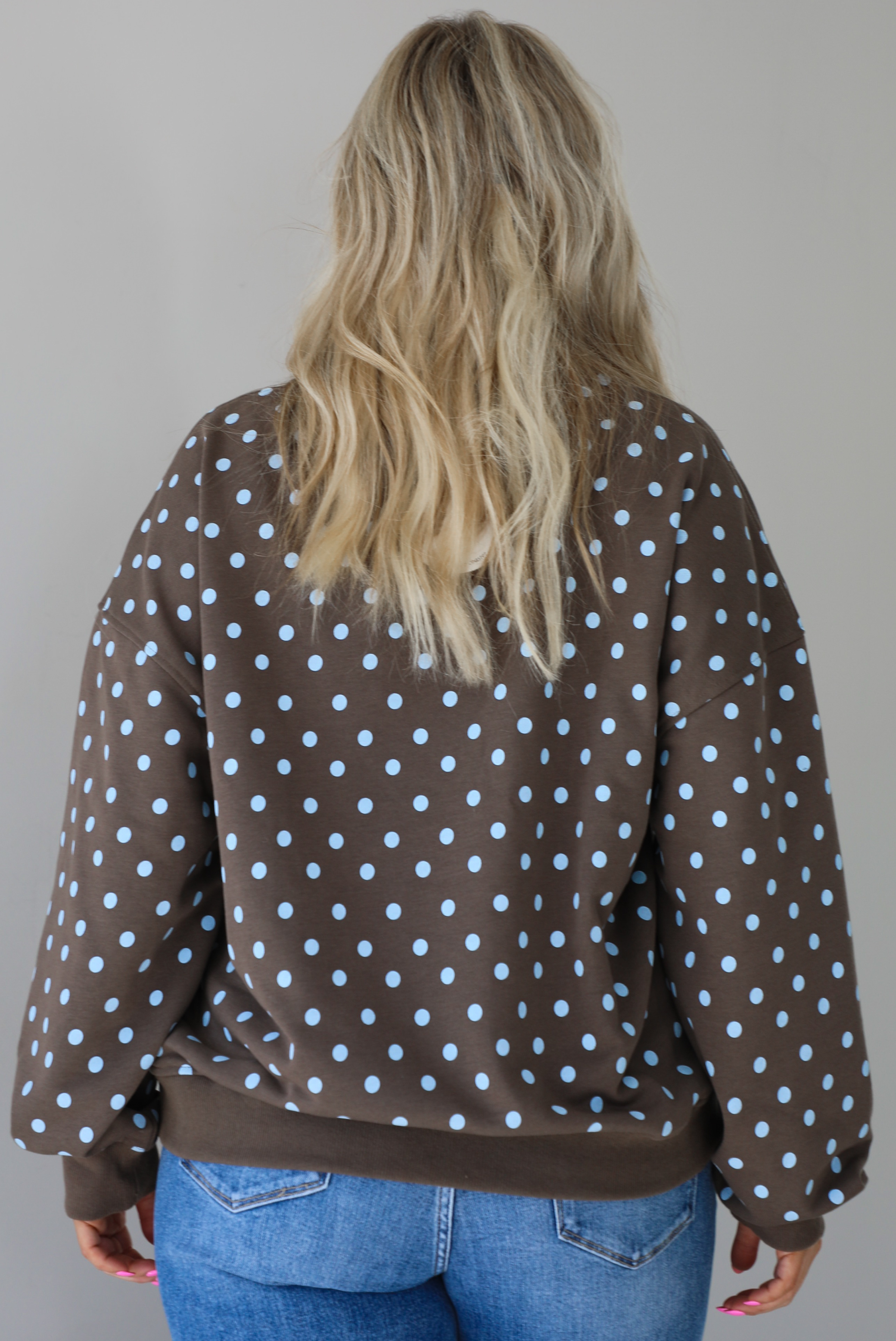 - Blue embroidered stitching on the left side of the sweater that reads "Trust The Process"